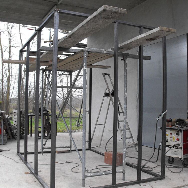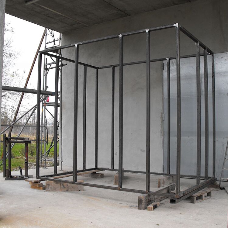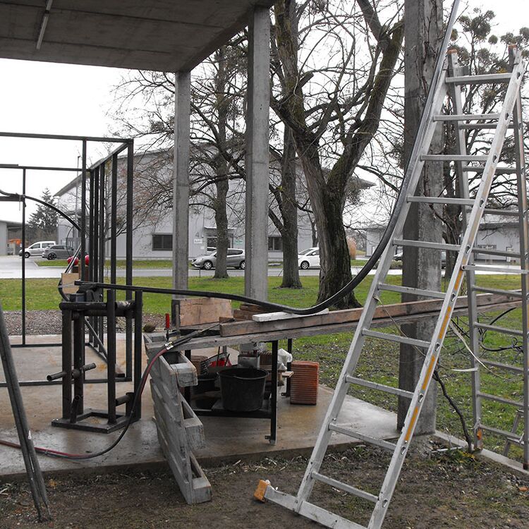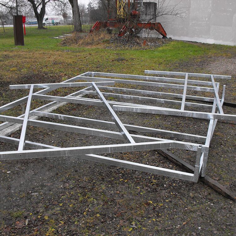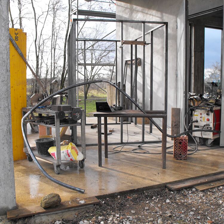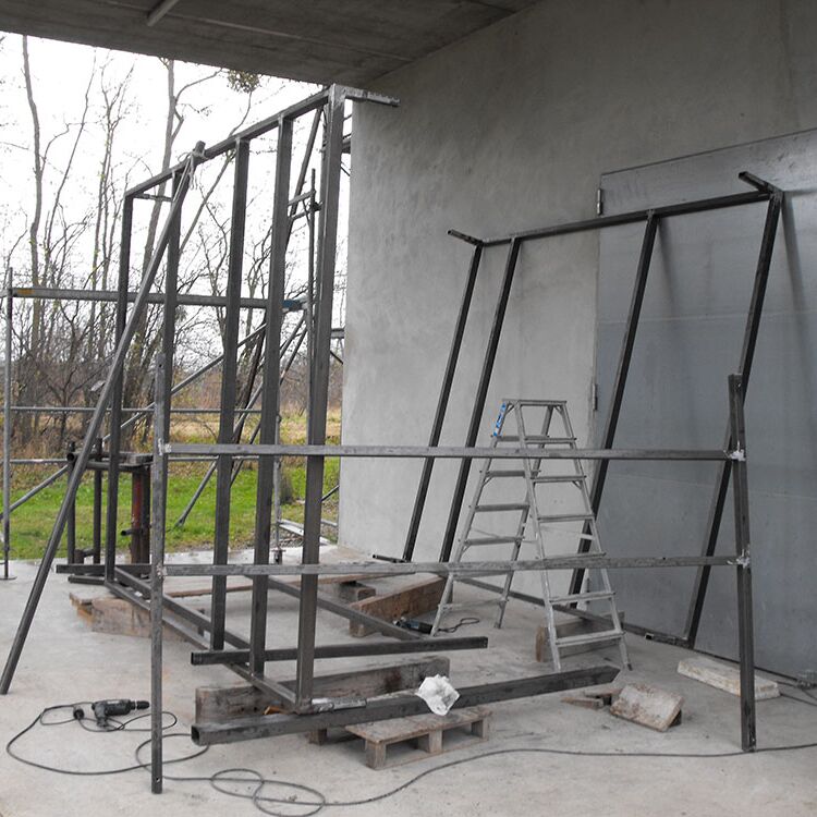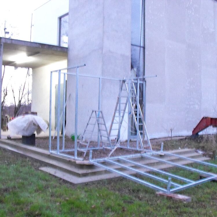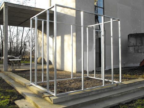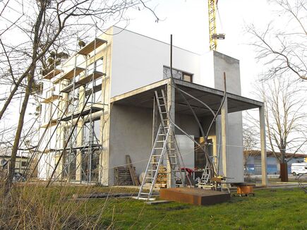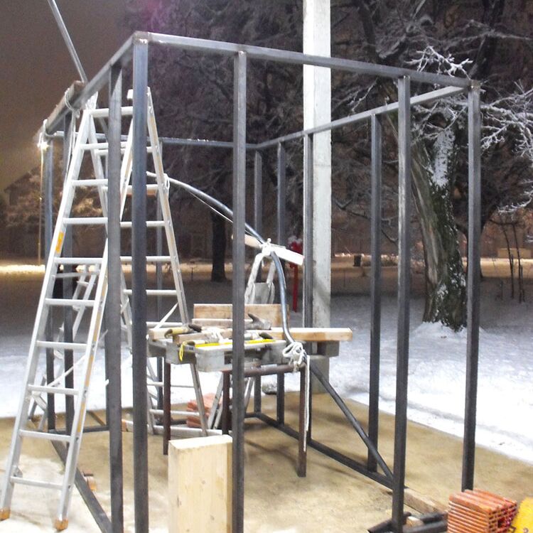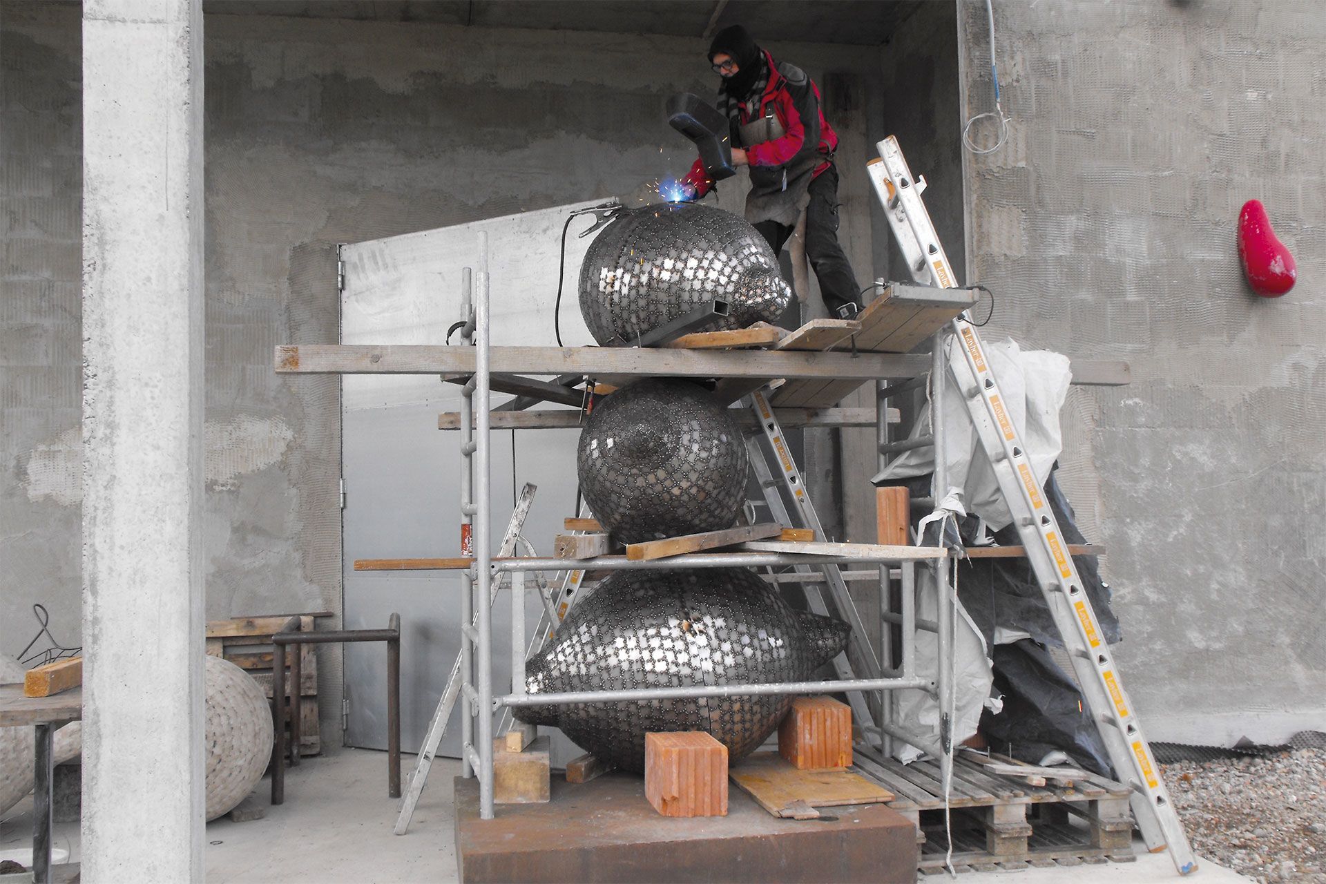 Die projektierte Skulptur ist in einer Größe von 200 x 300 x 250 cm aus verzinktem und farbigem Stahl geplant.