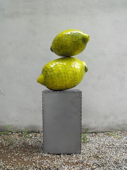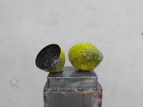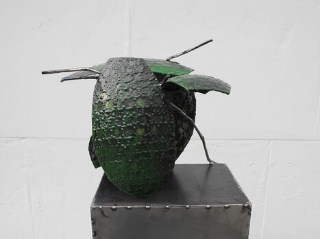Die »Neue Welten 20-4-24« - Skulptur im GewerbePark Breisgau weist deutliche Bezüge zu Früchten auf. Dem Entwickeln und Ansammeln von Information und Fertigkeiten, der Umwandlung von Ressourcen in eine Frucht, was auf dem Feld zur Beere wird, reift auf einem Gewerbe- und Indusrtiegebiet zu Produkten heran, welche über ein Infrastrukturnetzwerk mit der Welt kommuniziert und ausgetauscht werden.