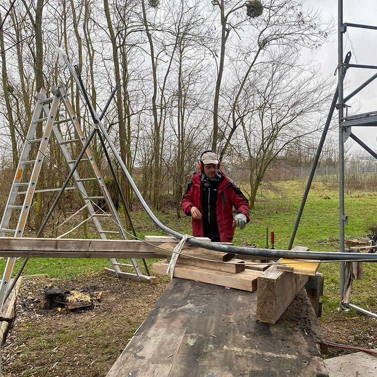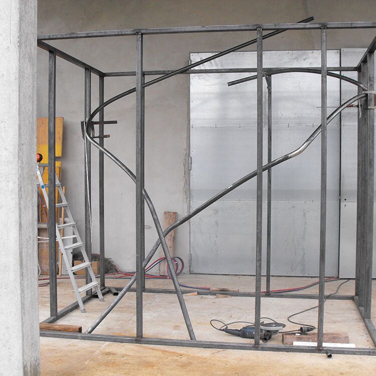 Persönliche Raumerfahrungen mit der Corona-Pandemie und interaktive Wahrnehmung der Betrachter durch die Begehbarkeit der Skulptur können sich dabei spiegeln, die Wechselwirkung von Mensch und Umwelt hautnah.Bruno Feger 2021- 22